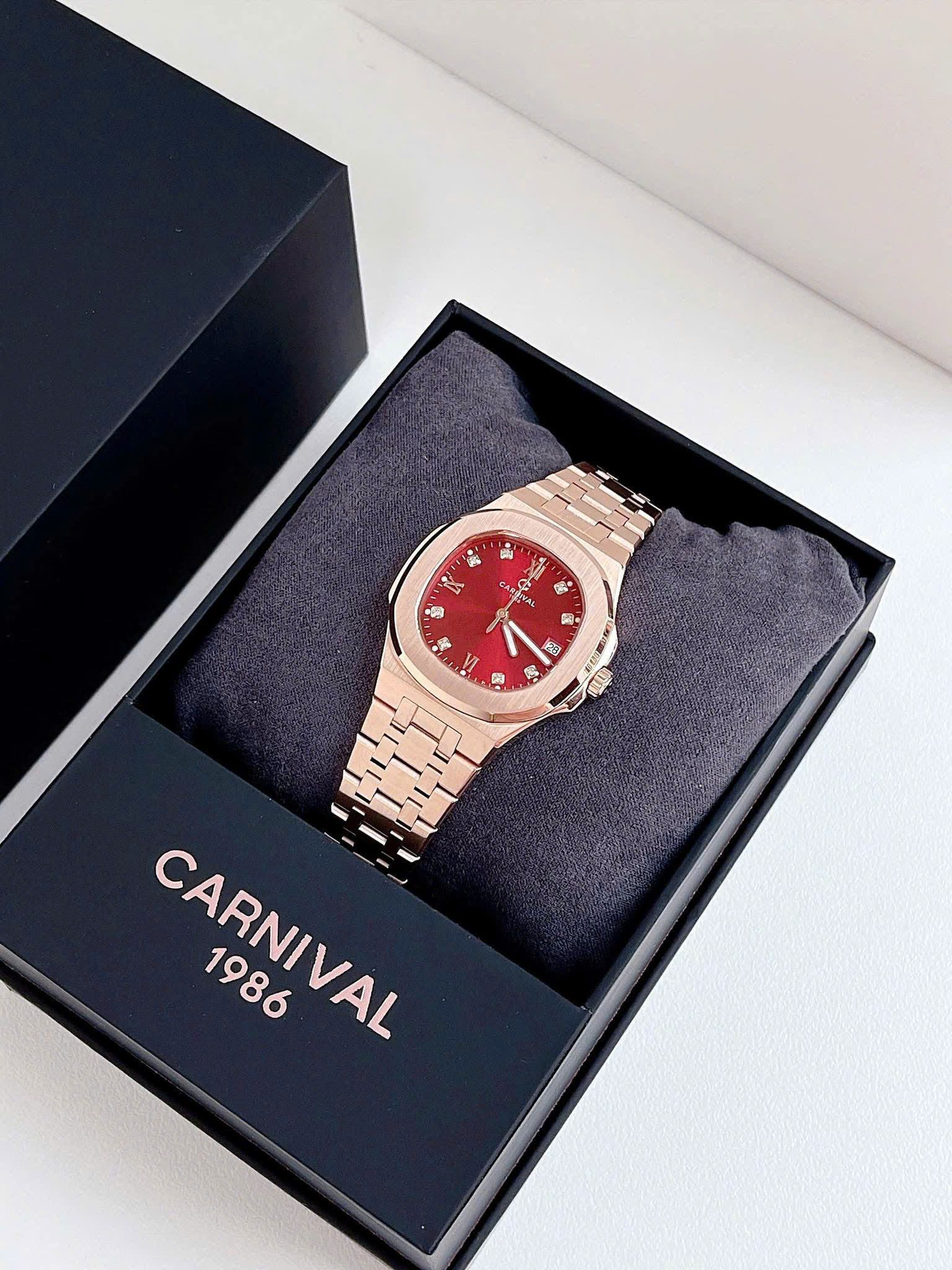 Đồng hồ nữ CARNIVAL 8160L-VH gây ấn tượng ngay từ ánh nhìn đầu tiên bởi thiết kế mặt tròn cổ điển nhưng không kém phần hiện đại. Với đường kính 34mm và độ dày 8mm, chiếc đồng hồ này ôm trọn cổ tay thanh mảnh của phái đẹp, tạo cảm giác vừa vặn, nhẹ nhàng mà vẫn toát lên vẻ đẳng cấp.